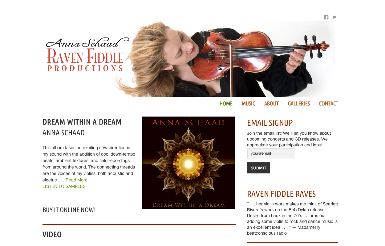 WEBSITE DESIGN – Anna Schaad : Raven Fiddle Productions – Bob Paltrow Web Design Bellingham WA
