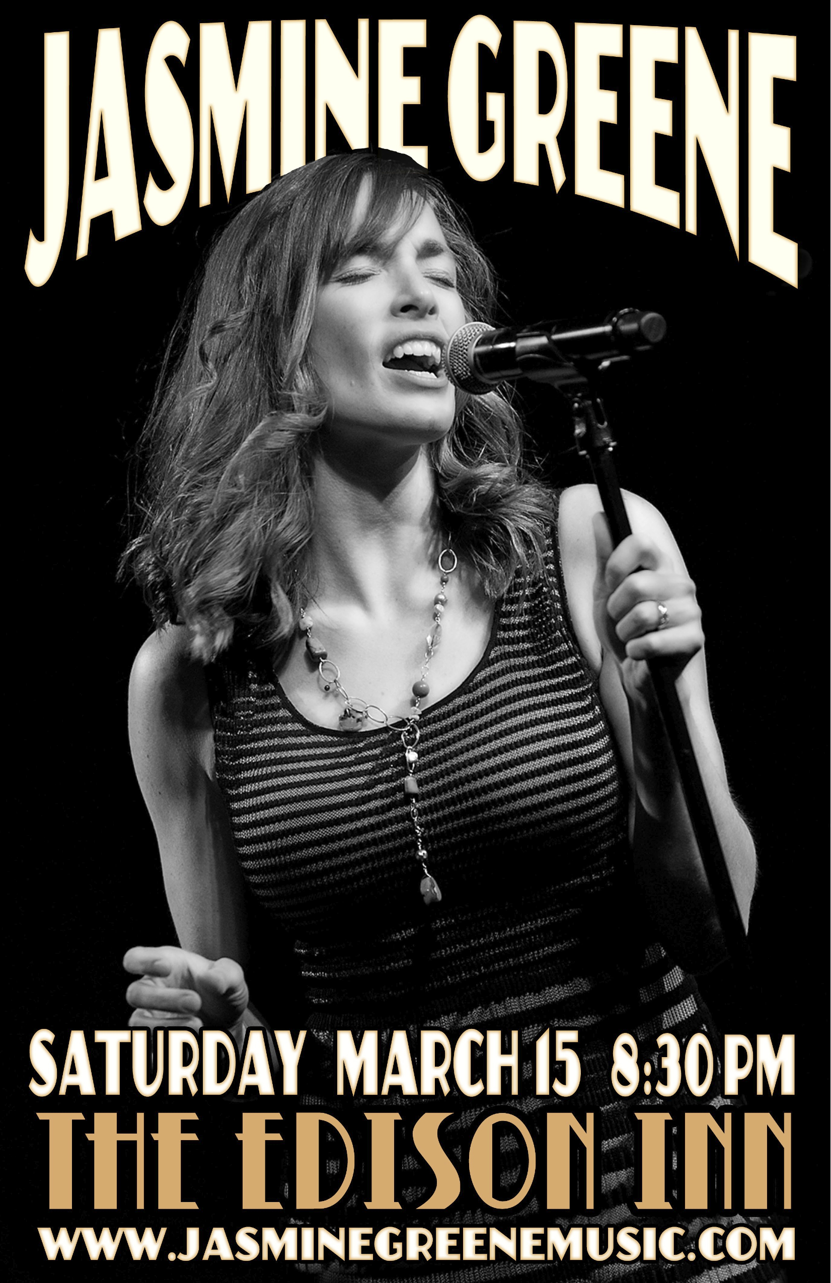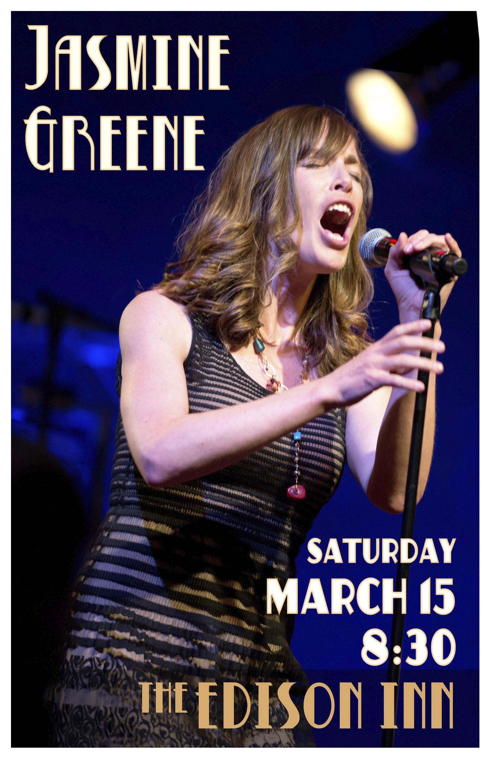 Poster: Jasmine Greene Band at The Edison Inn, Edison WA. Design by Bob Paltrow – Client: Jasmine Greene Band