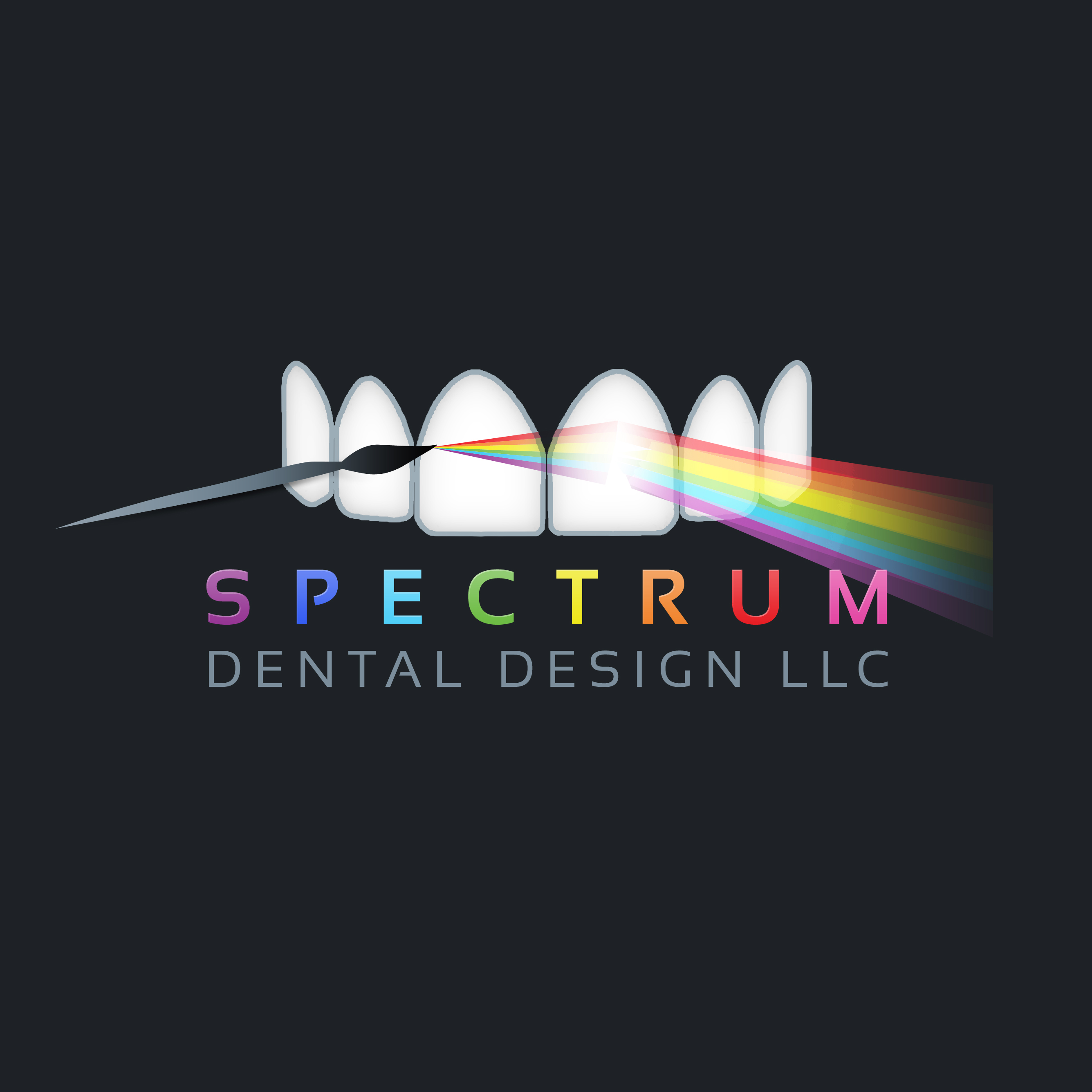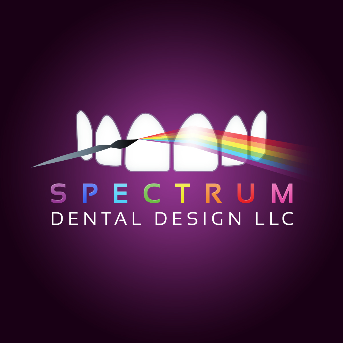 - “Dental Chart” – there’s only 1 in this group; the very last one, with black background, and I’ve turned it sideways in this version, to enclose / encase the logo. I wanted to focus on getting the teeth / brush / lettering / spectrum dialed in and not get distracted by the chart in the background. I look at the chart as more of a logo-condiment, than as part of the logo. Maybe we won’t even use the chart? Or maybe selectively.