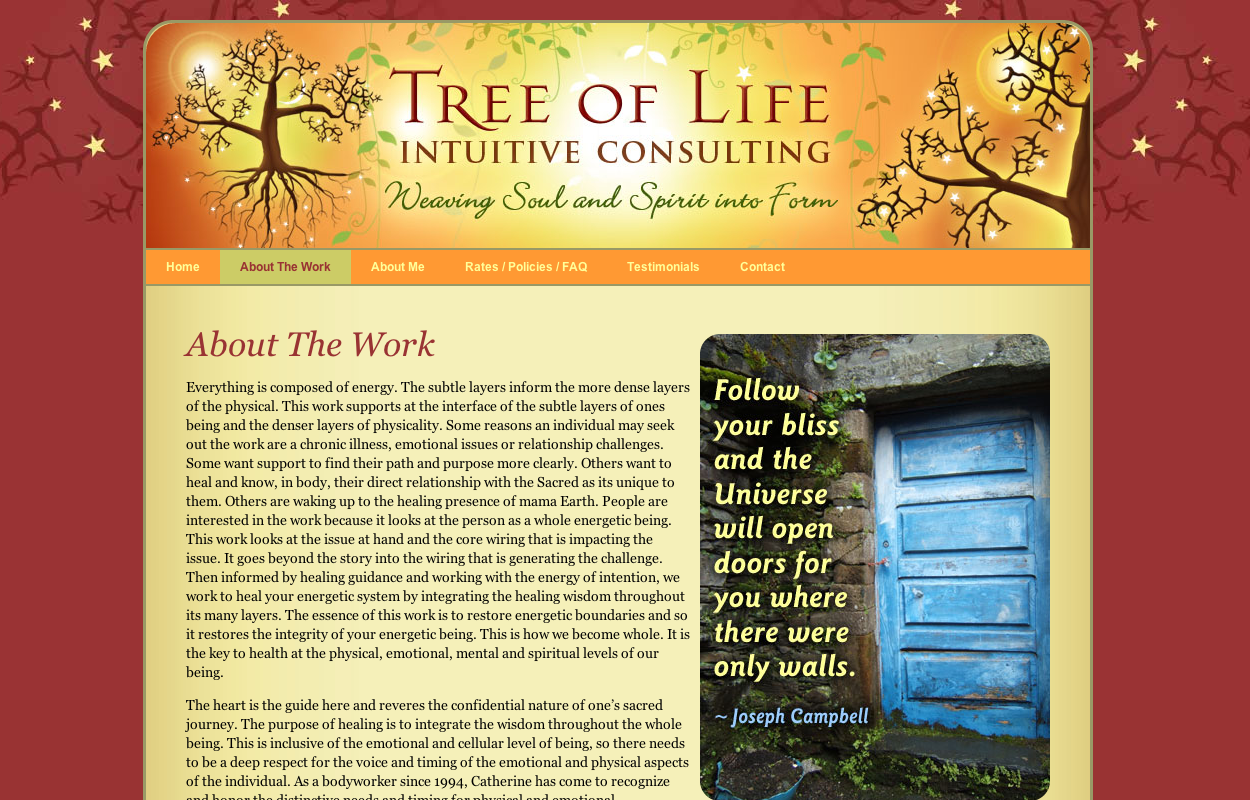Web Design – Tree of Life Intuitive Consulting Tree of Life Intuitive Consulting – Bob Paltrow Web Design Bellingham WA About the Work Testimonials Contact Tree of Life Intuitive Consulting Share on Facebook (Opens in new window) Facebook Share on LinkedIn (Opens in new window) LinkedIn Share on Pinterest (Opens in new window) Pinterest Share on X (Opens in new window) X Share on Tumblr (Opens in new window) Tumblr Print (Opens in new window) Print Email a link to a friend (Opens in new window) Email Like this:Like Loading... Related Bob Paltrow2017-02-20T19:17:58+00:00Web Design| Share This! FacebookXRedditLinkedInWhatsAppTumblrPinterestVkEmail Related Posts Ruby Flambé – Music Production and Promotional Campaign October 23rd, 2018 Video – Social Media Short: Chakras September 24th, 2018 Web Design – Hythane Company; Natural Gas July 7th, 2014 Anna Schaad – Musician July 6th, 2014 Web Design – Soundings of the Planet June 29th, 2014 Web Design – Slo Pitch Casino and Grill June 29th, 2014 Web Design by Bob Paltrow June 29th, 2014